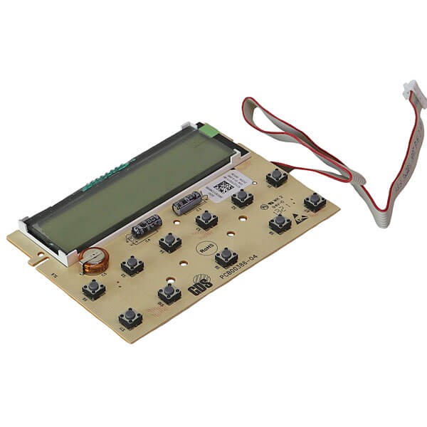 Bedienplatine komplett mit Anschlusskabel, Stecker und Drucktasten. Die Platine befindet sich vorne in der Bedienblende.