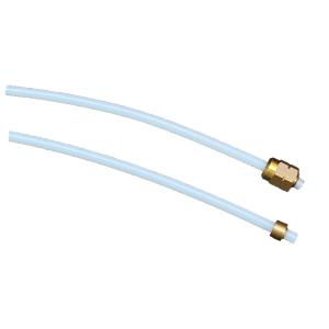 Der Schlauch hat auf der einen Seite einen Metallring und auf der anderen einen Schraubanschluss.