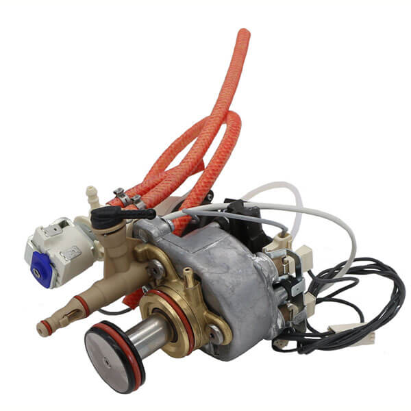 Der Thermoblock / Boiler mit Piston wird mit Kolben, Dichtungen, Auslaufstutzen, Magnetventil, Funktionsventil