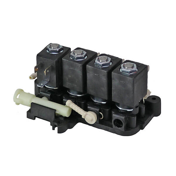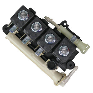 Ventilblock komplett mit 4 Magnetventilen und Schlauchanschlüssen für die aufgeführten Saeco Xelsis Kaffeeautomaten.