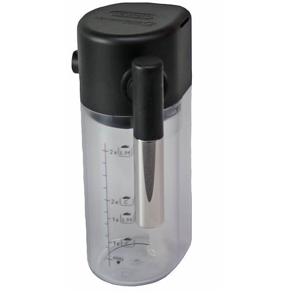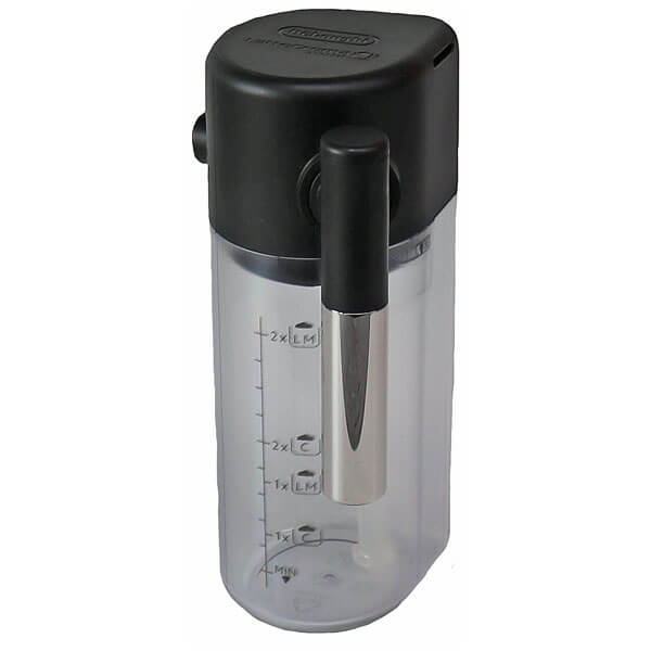 Milchkaraffe komplett mit Deckel, Aufschäumer und Ansaugrohr für den DeLonghi Kaffeevollautomaten.