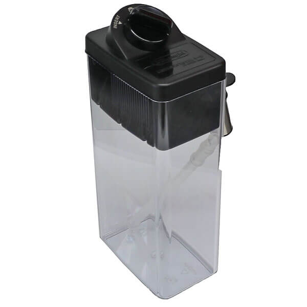 Milchkaraffe komplett mit Deckel, Aufschäumer sowie Ansaugrohr für den hier aufgeführten DeLonghi Kaffeevollautomaten.