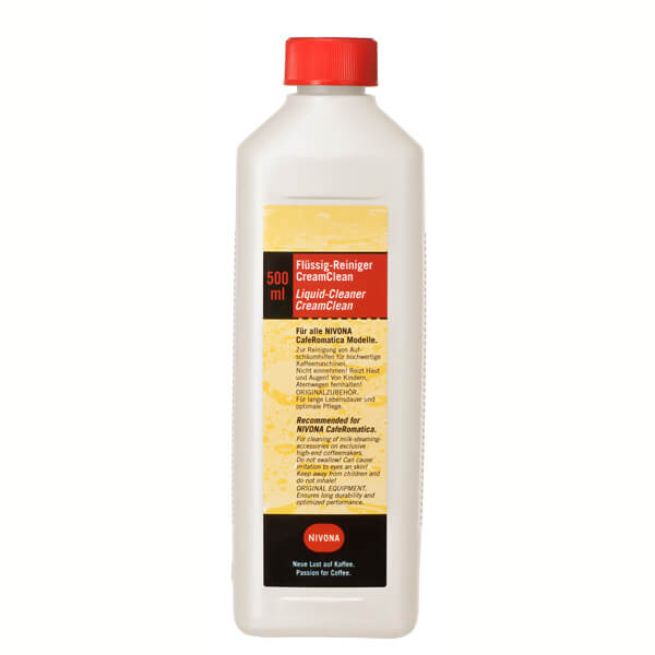 Nivona Reiniger für Milchaufschäumer. Flüssig-Milchrestereiniger CreamClean, 500 ml. Nicht nur sauber, sondern rein. Flasche reicht für 15 Reinigungsvorgänge. Mit dem Flüssigreiniger CreamClean können alle hochwertigen Aufschäumvorrichtungen von Kaffee-u. Espressomaschinen einfach von Milchrückständen befreit werden. Lebensmittelecht und geschmacksneutral reinigt er zuverlässig einfach mit Wasser gemischt (10:1), löst er auch kleinste Milchreste. Damit der Aufschäumer immer hygienisch u. einwandfrei Milchschaum zaubert