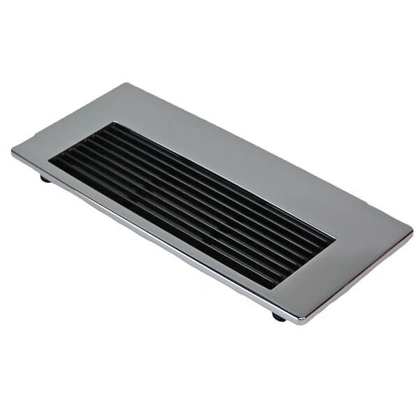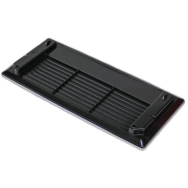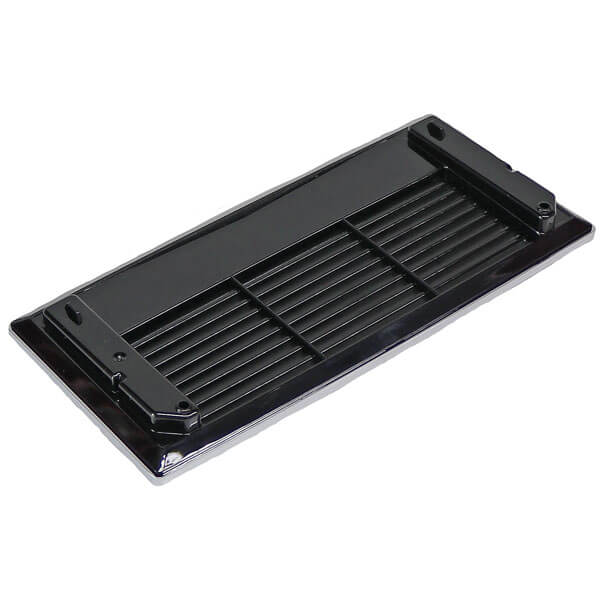 Die Tassenabstellfläche wird vollständig mit einer Edelstahl-Oberfläche und einem schwarzen Kunststoffeinsatz geliefert.