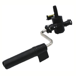 Der Wasserauslaufhahn mit Ventil befindet sich vorne auf der rechten Seite.